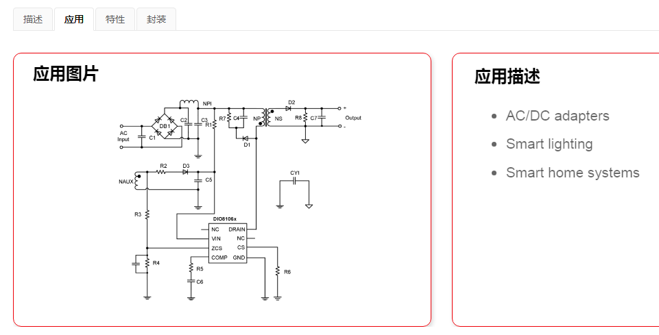 The DIO81064 consists of an integrated single stage flyback & PFC regulator with 650 V power MOSFET, specifically designed for a high performance non-isolated converter with minimal external components targeting at LED lighting applications. The DIO81064 drives the flyback converter in the quasi-resonant mode to achieve higher efficiency and keeps the flyback converter in constant on time operation to achieve high power factor. This chip adopts special design to achieve quick start up and reliable protection for safety requirement.