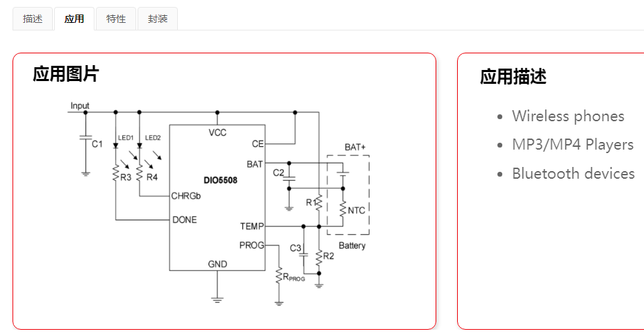 The DIO5508 is a complete constant-current / constant voltage linear charger for single cell Lithium-Ion batteries. No external sense resistor is needed, and no blocking diode is required due to the internal MOSFET architecture. The charge voltage is fixed at 4.2V, and the charge current can be programmed externally with a single resistor. The DIO5508 automatically terminates the charge cycle when the charge current drops to 1/10 the programmed value after the final float voltage is reached. When the input supply (wall adapter or USB supply) is removed, the DIO5508 automatically enters a low current state, dropping the battery drain current to less than 0.5µA. The DIO5508 can be put into shutdown mode, reducing supply current to 40µA (Typ.). The DIO5508 is available in EP-SOIC8 and EP-MSOP8 packages.